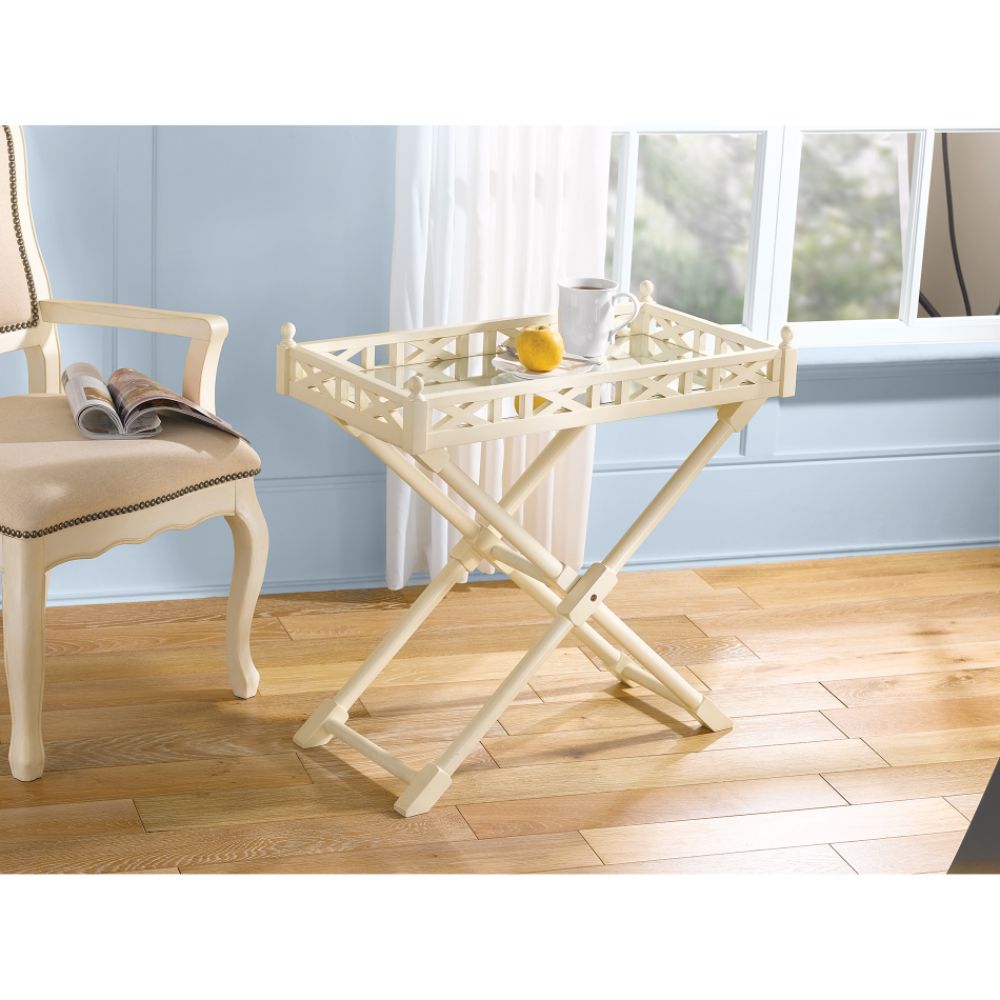 Ebony Finish Square Tray Table - I have this table in a round tray top and cherry finish. Sometimes you can find them for sale on One Kings Lane (that's where I got mine).